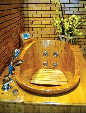 木桶木紋清晰,桶面布滿黑色木結(jié),給人溫馨、自然之感,在浴室貼上木紋理的瓷磚,放一塊仿麻的腳墊等,讓人有一種返璞歸真的感覺。木桶表面經(jīng)過抗菌、防腐等技術(shù)處理,底部設(shè)有排水裝置,消費者可根據(jù)需要在水中添加花瓣、牛奶、中草藥、精油等,是時下不少白領(lǐng)女性美容養(yǎng)生的方法。