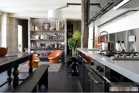 如果廚房空間足夠大,則作為廚房主體的櫥柜可盡量選擇鮮亮、濃重的色彩,增加視覺上的跳躍性,使櫥柜檔次加分。在選擇時一定要注意,既要實用,又要有裝飾性,同時還要與整體和諧統(tǒng)一。