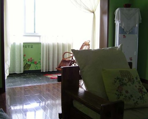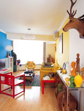 直接在松木地板上刷清漆后呈現(xiàn)的顏色略帶黃色調(diào),墻壁就運(yùn)用“相鄰顏色”的法則,可挑選與黃色相鄰的綠色、淡黃和淺綠的搭配,再加上幾件墨綠色的家具,用百葉窗擋住屋外刺眼的陽光,屋內(nèi)一片柔和,是和朋友們輕松愉快地暢談的好處所!