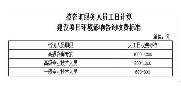 三、按咨詢服務(wù)人員工日計(jì)算建設(shè)項(xiàng)目環(huán)境影響咨詢收費(fèi)標(biāo)準(zhǔn)