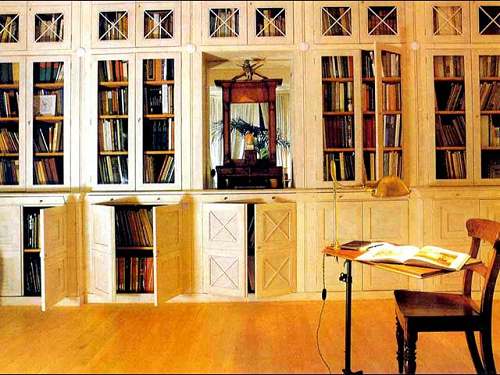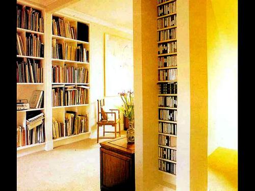 喜歡讀書(shū)的人,大多都有理性的一面,講究秩序。面對(duì)眾多的藏書(shū),如何做到藏而不亂呢?可以將書(shū)柜分成很多格子,將所有藏書(shū)進(jìn)行分門(mén)別類(lèi),然后各歸其位,這樣要看的時(shí)候,依據(jù)分類(lèi)的秩序,就省去了到處找書(shū)的麻煩。藏書(shū)太多,不妨將書(shū)柜做得高一些,取時(shí)借助一把小扶梯。 上海裝潢網(wǎng)