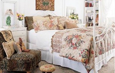 以白色為基調(diào)的臥室,看起來未免有些美中不足。古典花紋的印花織物以及地毯,搭配白色的窗簾和鐵藝床,使整個(gè)空間明媚中蘊(yùn)涵著沉靜的氣息。豹紋沙發(fā)的點(diǎn)綴好似平靜水面上激起的浪花,帶來**與活力。