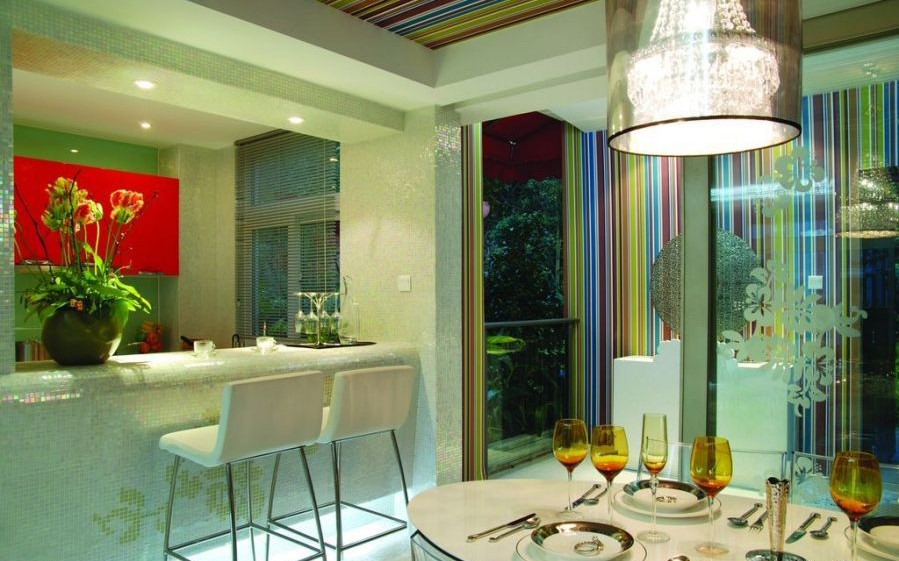 綠色和紅色的適度穿插給就餐創(chuàng)造了一個良好的環(huán)境。
