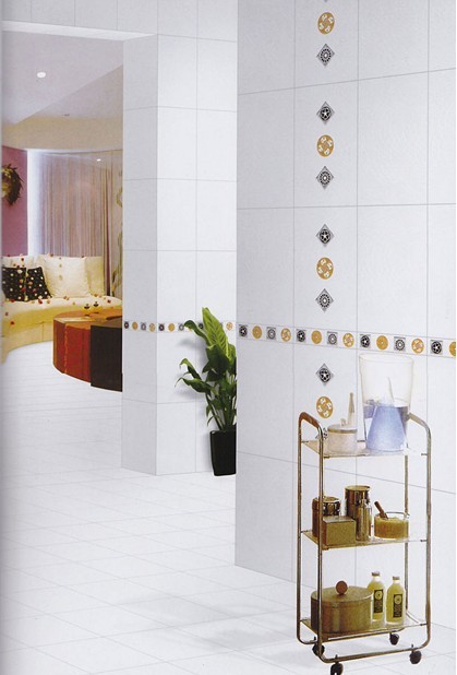 腰線磚:多為印花磚。為了配合墻磚的規(guī)格,腰線磚一般定為60毫米×200毫米的幅面。