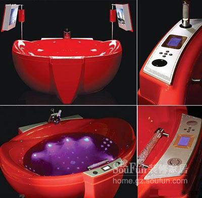 大多數(shù)奢華的東西都是用來(lái)顯示富貴,而不是真正多有用的,比如這個(gè)超級(jí)奢華的高科技浴缸。這個(gè)Red Diamond浴缸兩側(cè)各自掛有一個(gè)HDTV,使用集成的GSM模塊來(lái)無(wú)線操作(也有打電話的功能),帶有一個(gè)施華洛世奇水晶鑲邊的香檳酒座,而且整個(gè)浴缸是鍍金的。