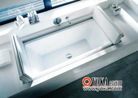 蓋板打開時浴缸一目了然。板合上后,浴缸成了休閑躺椅,在上面隨意看書喝咖啡,都是片刻的享受。杜拉維特 ¥40000