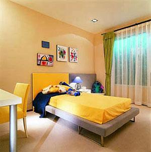 子女房與主臥最大的區(qū)別就在于設(shè)計(jì)上要保持相當(dāng)程度的靈活性。子女房只要在區(qū)域上為他們做一個(gè)大體的界定,分出大致的休息區(qū)、閱讀區(qū)及衣物儲(chǔ)藏區(qū)就足夠了。在室內(nèi)色彩上吸引孩子是設(shè)計(jì)子女房的要點(diǎn)。兒童房間容易弄臟,裝飾時(shí)應(yīng)采用可以清洗及更換的材料,最適合裝飾兒童房間的材料是防水漆和塑料板,而高級(jí)壁紙及薄木板等不宜使用。